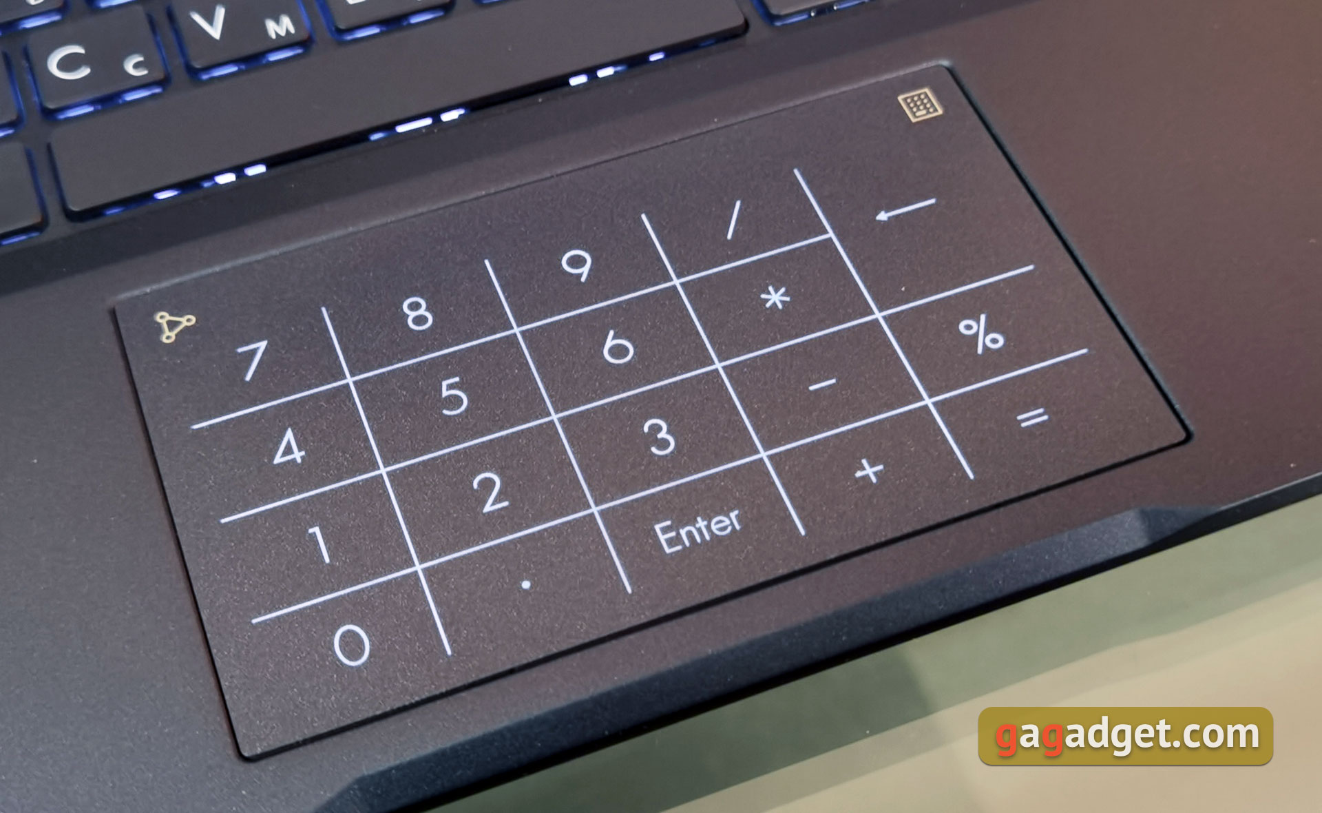 Touchpad ma dobrą czułość i przyjemną powłokę i generalnie jest w zupełności wystarczający podczas pracy z dokumentami. Choć chciałbym, aby jego fizyczne wymiary były nieco większe. Touchpad jest połączony z dotykową jednostką cyfrową NumberPad 2.0. Uruchamia się go przyciskiem dotykowym w prawym górnym rogu. Natomiast przycisk po lewej stronie odpowiada za jasność znaków (wciśnięcie) oraz uruchomienie kalkulatora (machnięcie w dowolnym kierunku od przycisku).