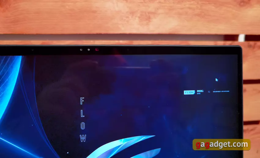 ASUS ROG Flow X13 2023 (GV302) to transformer z ekranem dotykowym, więc cały panel jest chroniony przez Corning Gorilla Glass DXC. Ramki wokół wyświetlacza są cienkie, a kamera internetowa FullHD i mikrofony znajdują się w swoich zwykłych miejscach. Uzupełnia je pasek postępu i kamera na podczerwień do identyfikacji właściciela. Laptop nie posiada skanera linii papilarnych.