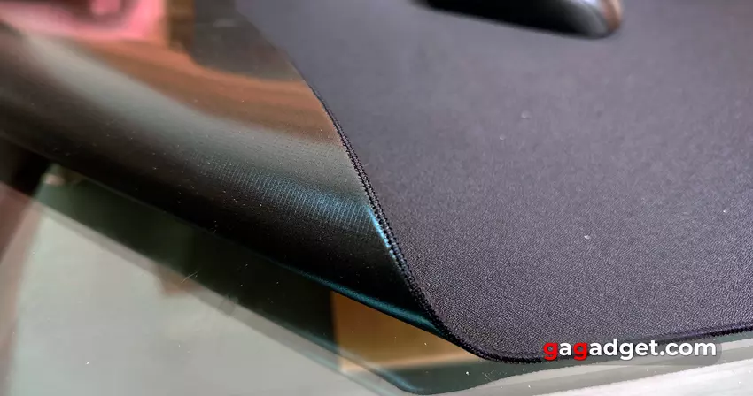 Powierzchnia jest wykonana z hybrydowej tkaniny z ochronną powłoką odporną na wodę, olej i kurz. Ma ona bardzo delikatną teksturę, a mysz doskonale się po niej ślizga. Standardowa grubość wynosi 3 mm, apodstawa wykonana jest zmiękkiej pianki poliuretanowej o wysokiej gęstości z efektem pamięci. Dosłownie przykleja się do powierzchni stołu i jest bardzo bezpiecznie zamocowana w żądanej pozycji. Aby zmienić pozycję, trzeba ją dosłownie oderwać od stołu.