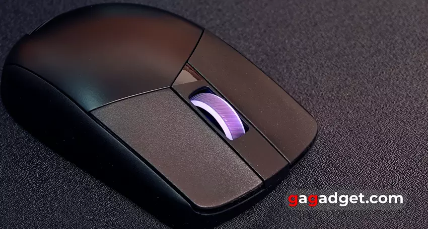 Kółko przewijania jest jedynym podświetlanym elementem myszy. Jest ono półprzezroczyste, pokryte gumą i posiada ukośne nacięcia dla lepszego chwytu.
