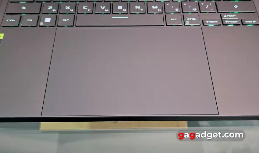 Na osobną uwagę zasługuje touchpad laptopa. Jest ogromny, mierzy 150,3 x 98,8 mm i ma szklaną powłokę. Czułość i dokładność pozycjonowania są doskonałe. Oczywiście na touchpadzie można grać tylko w strategie turowe lub RPG. Ale do wszystkiego poza grami touchpad jest całkowicie wystarczający.