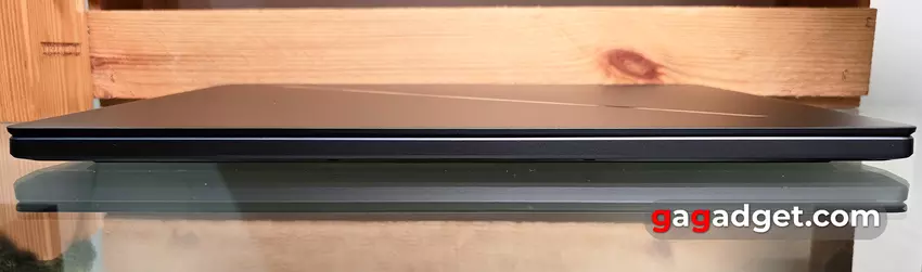 W pozycji zamkniętej tył laptopa prawie się nie wyróżnia. Znajduje się tam jedynie grawerunek z nazwą linii Zephyrus i wskaźniki stanu LED.