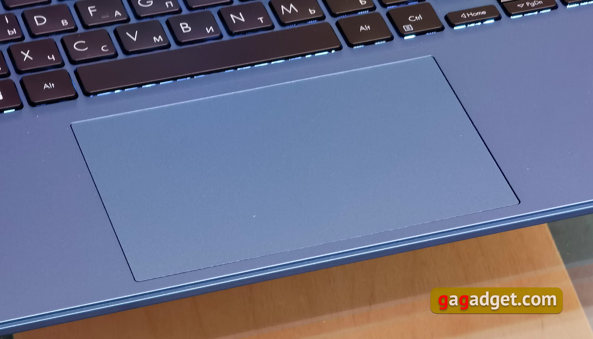 Touchpad, choć nie jest szklany, ma dość duże wymiary 129,7x82,1 mm, przyjemną powłokę hydrofobową i dobrą czułość. Nie było żadnych skarg na jego wydajność, jest wystarczający do pracy z dokumentami i przeglądarką.