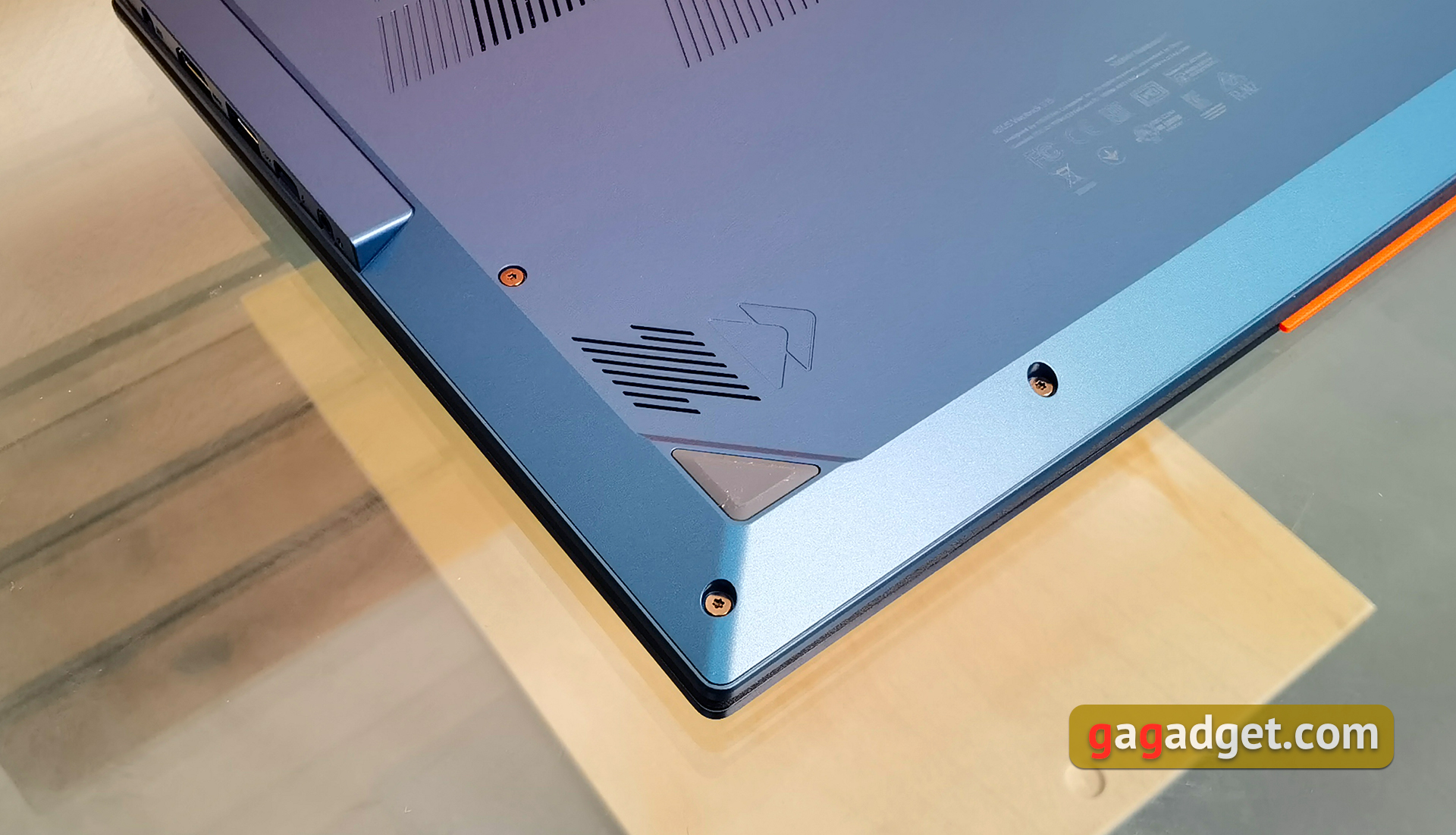 Głośniki stereo laptopa znajdują się na spodzie obudowy i są skierowane w dół pod kątem prostym, co zwykle nie ma zbyt dobrego wpływu na jakość dźwięku. Ale w tym przypadku wszystko okazało się całkiem dobre. Głośniki są głośne i całkiem dobre pod względem jakości odtwarzania. Są nawet ślady niskich częstotliwości.