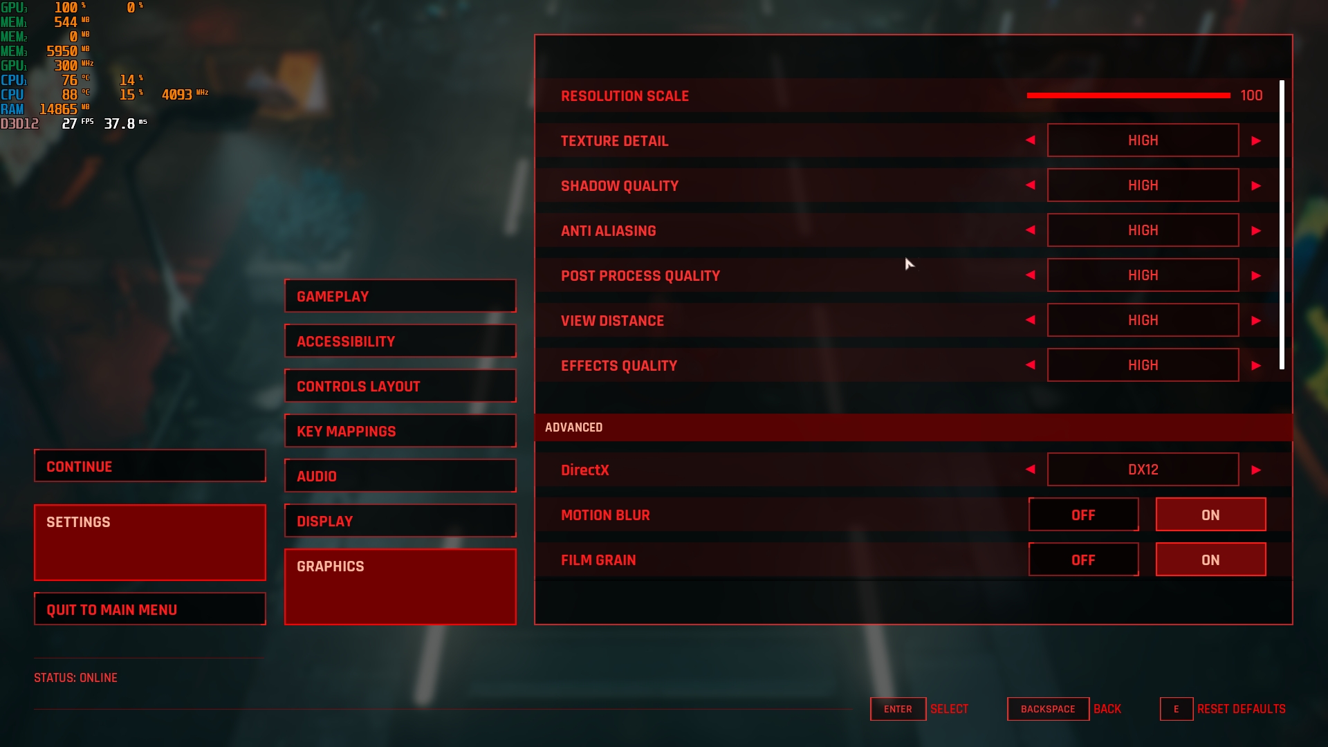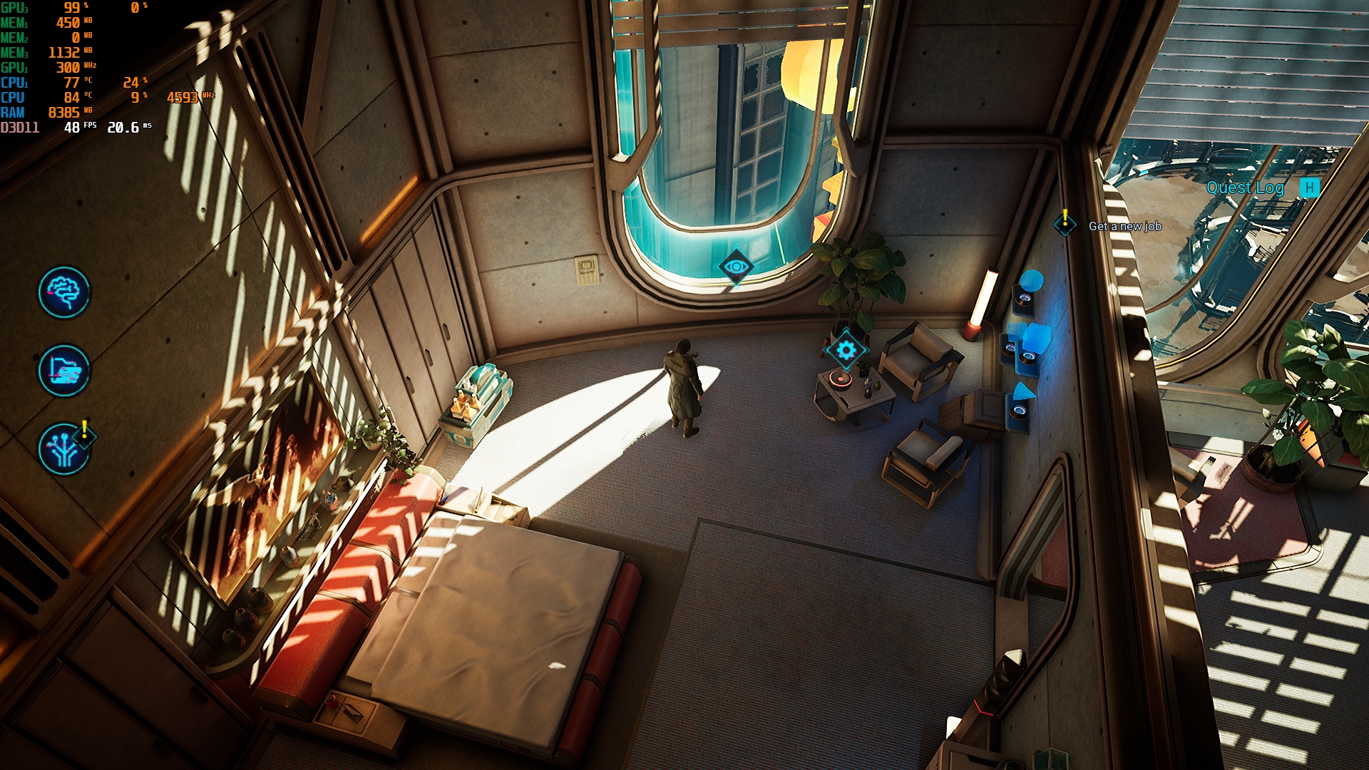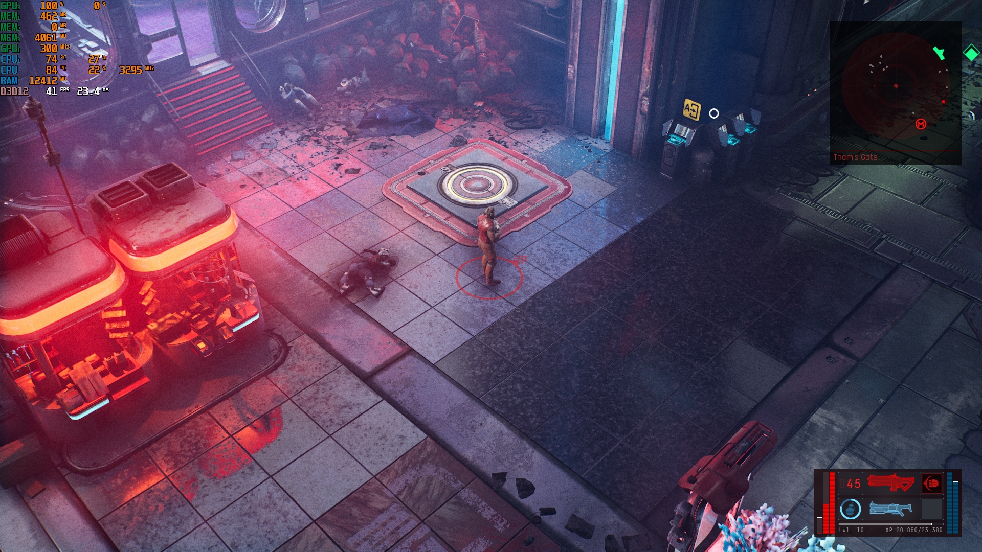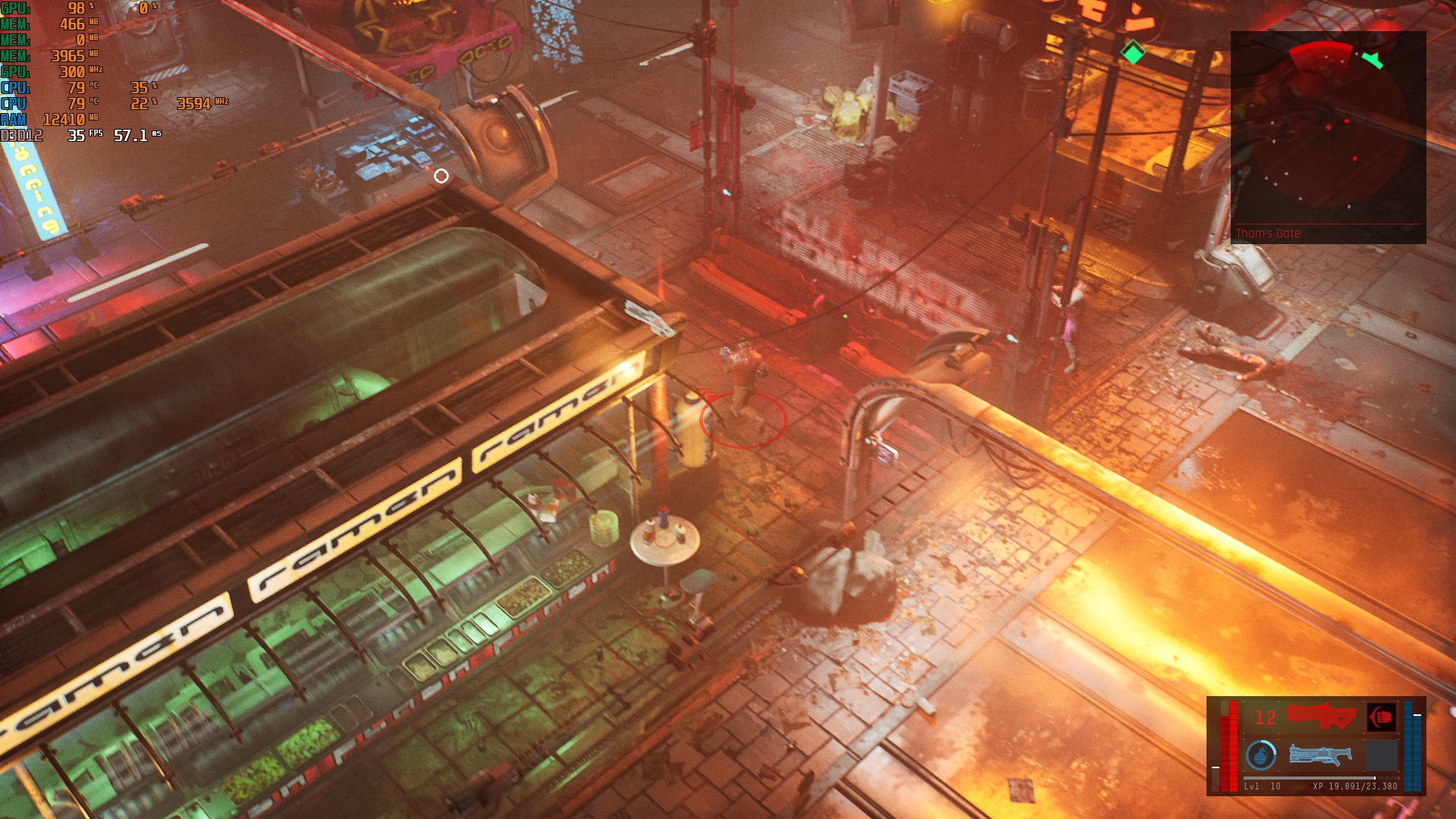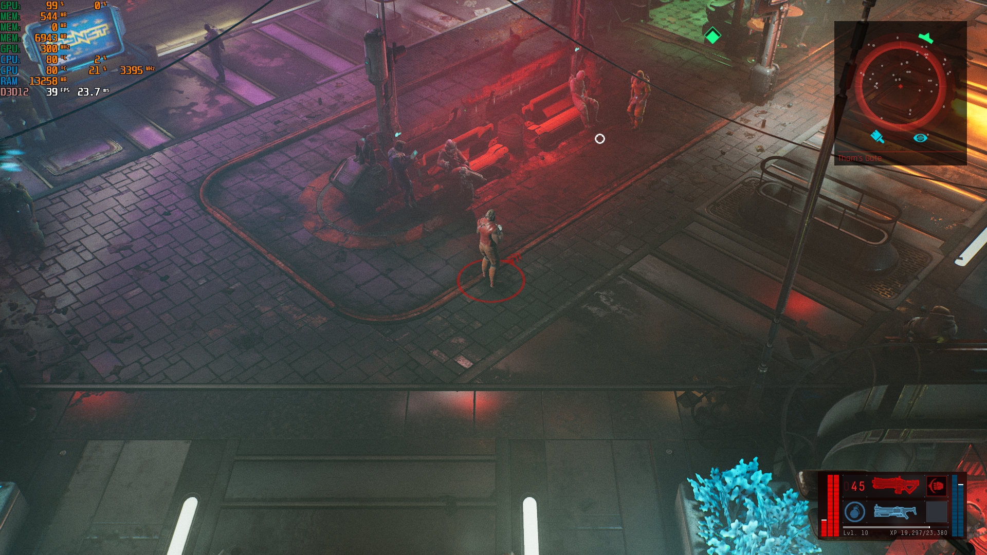 - Gamedec. Ustawienia wysokie: około 50 FPS.