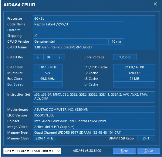 | Procesor. | Intel Core i9-13900H (2,6-5,4 GHz), 14 (6+8) rdzeni, 20 wątków, (Raptor Lake, Intel 7) |