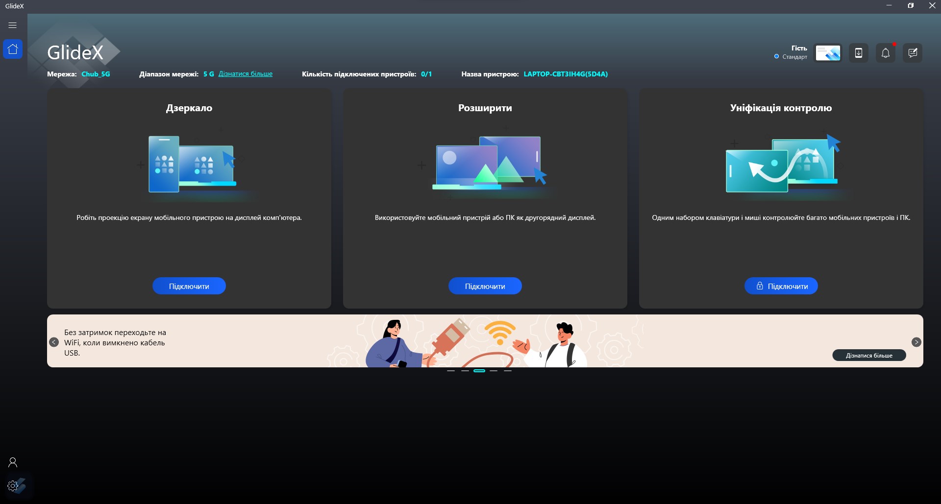 GlideX to aplikacja umożliwiająca łatwe podłączenie smartfona do laptopa, wykorzystanie go jako dodatkowego wyświetlacza i szybkie przesyłanie danych.