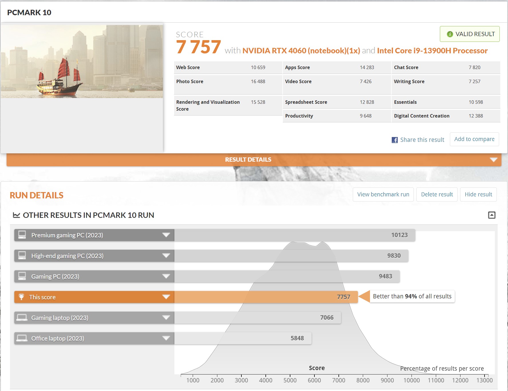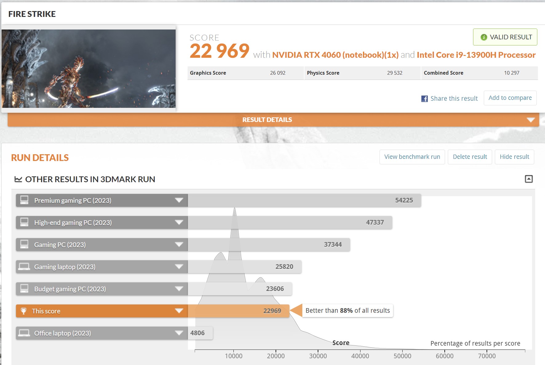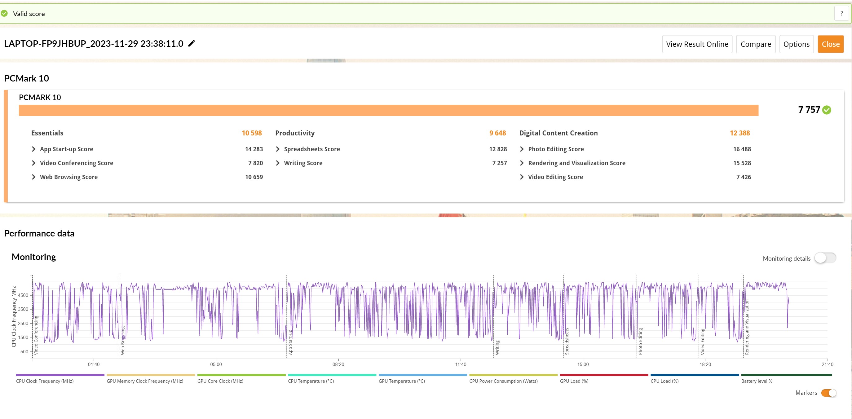 Laptop wykazuje imponującą wydajność jak na tę obudowę. Dotyczy to zarówno testów procesora, jak i grafiki. Tak, laptop jest nieco gorszy od dużych modeli do gier, w których większa obudowa pozwala zainstalować mocniejszy system chłodzenia i odpowiednio mieć wyższe TDP procesora i karty graficznej. Ale w swojej kategorii wagowej laptop okazał się bardzo wydajny. Nadaje się zarówno do edycji wideo, jak i modelowania 3D: