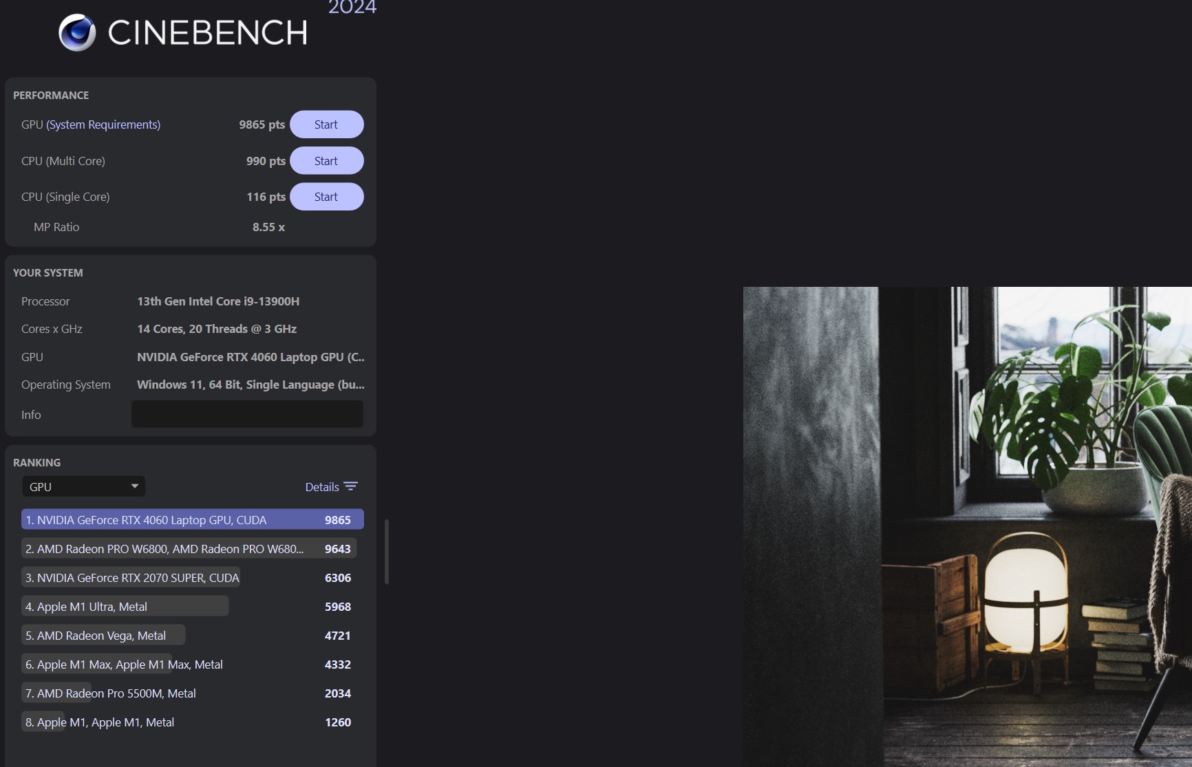 Teraz najciekawsza część. ASUS zdołał wcisnąć bardzo wydajne podzespoły w kompaktową i cienką obudowę. Procesor to topowy Intel Core i9-13900H. Jest on produkowany przy użyciu procesu Intel 7 i zawiera 14 rdzeni. 6 wydajnych rdzeni o częstotliwości taktowania od 2,6 do 5,4 GHz i 8 energooszczędnych rdzeni o częstotliwości taktowania od 1,9 do 4,1 GHz. Obsługiwanych jest do 20 wątków obliczeniowych, a pamięć podręczna wynosi 24 MB. Standardowy poziom TDP deklarowany przez Intela to 45W. Całkowity poziom TDP dla procesora i karty graficznej w ASUS Zenbook Pro 14 OLED (UX6404) wynosi 105 watów. Zintegrowany układ graficzny Intel Iris Xe pracuje z częstotliwością do 1,5 GHz. Pamięć RAM to 32 GB DDR5-4800 (2x16 GB), działa w trybie dwukanałowym. Laptop obsługuje do 48 GB: 16 GB wlutowanych i kolejne 16 GB w slocie. Gniazdo można zastąpić kartą o pojemności 32 GB. Interfejsy bezprzewodowe Bluetooth 5.2 i szybkie Wi-Fi 6E (802.11ax) (Dual band) 2x2. Zastosowana dyskretna karta graficzna to NVIDIA GeForce RTX 4060 Laptop z 8 GB pamięci wideo GDDR6. Częstotliwość bazowa wynosi 1140 MHz z możliwością przyspieszenia do 1470 MHz. Podobnie jak nowoczesne modele gamingowe, laptop jest wyposażony w multiplekser MUX Switch, który umożliwia podłączenie oddzielnej karty graficznej do wyświetlacza, z pominięciem wbudowanej grafiki. Zmniejsza to opóźnienia i nieznacznie zwiększa wydajność.