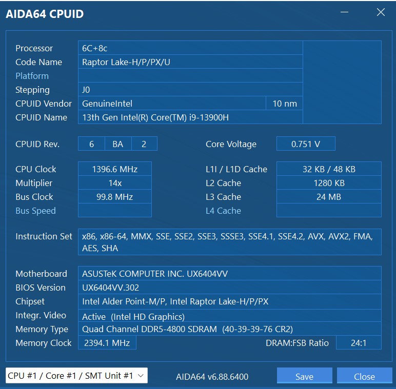 | Procesor | Intel Core i9-13900H (2,6-5.4 GHz), 14 (6+8) rdzeni, 20 wątków, (Raptor Lake, Intel 7) |