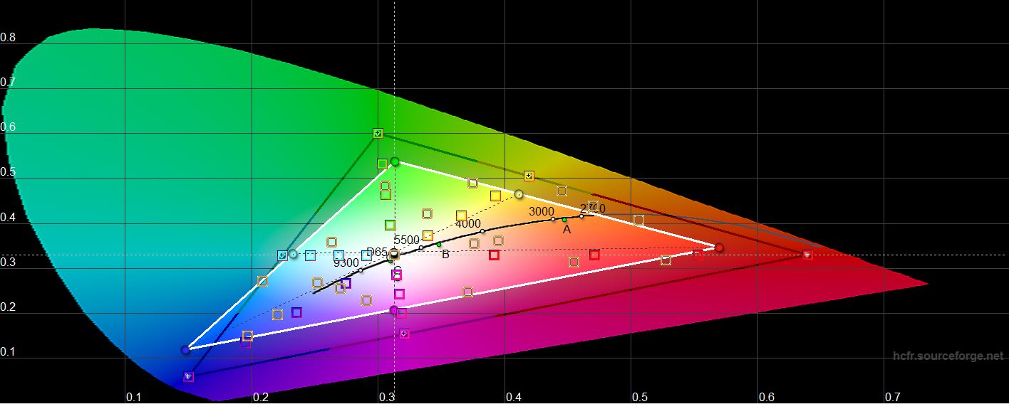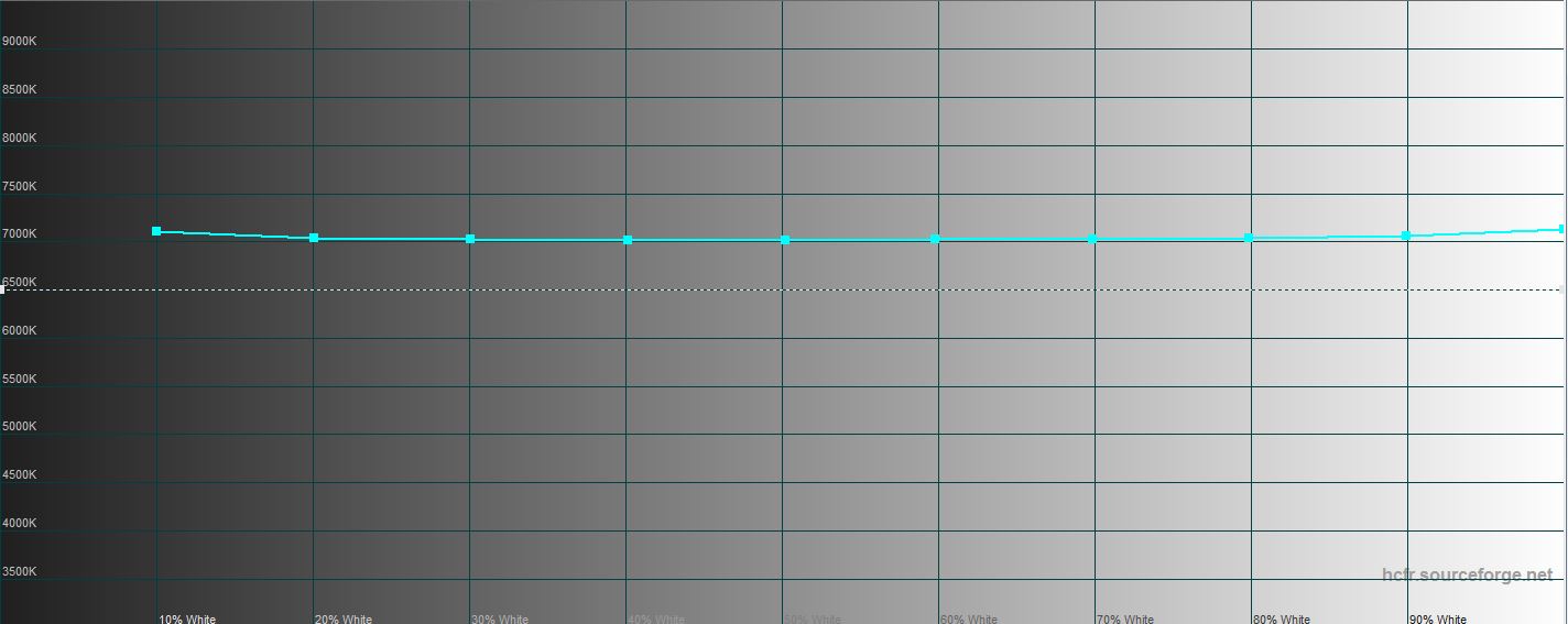 Pomiary wykazały, że maksymalna jasność w trybie „Standard” wynosi 203,214 cd / m2, jasność czarnego pola wynosi 0,245 cd / m2, a współczynnik kontrastu statycznego wynosi 849: 1. Jednocześnie występuje minimalna wada czerwieni, ale kalibracja jest bardzo zbliżona do wartości odniesienia, temperatura koloru wynosi około 7000K (w odniesieniu do 6500K), a współczynnik błędu koloru ΔE nie przekracza 6. Ale pokrycie kolorów jest nieco mniejsze niż przestrzeń światła sRGB: