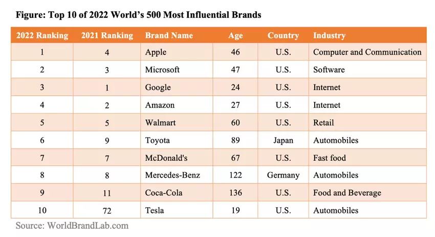 Firma badawcza World Brand Lab podsumowała rok 2022 i stworzyła ranking 500 najbardziej wpływowych marek na świecie.