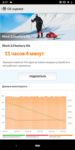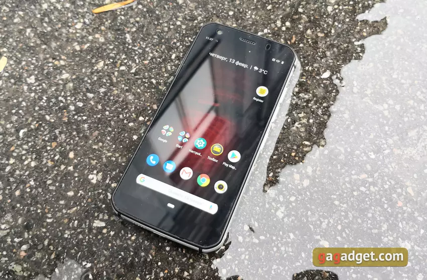 Główną osobliwością smartfona jest bardzo skromna bateria 3100 mAh. I nie tylko według standardów chronionych smartfonów, nowoczesne „zwykłe” modele w przeważającej części oferują większe baterie. Obsługiwane szybkie ładowanie. W rzeczywistości, prawdopodobnie ze względu na niską rozdzielczość ekranu, wszystko jest standardowe pod względem autonomii. Smartfon dzień wytrzymuje stabilnie. A jeśli weźmiesz pod uwagę, że oczywiście kupią go do komunikacji, a nie do gier lub ciągłego fotografowania kamerą, to przetrwa do półtora dnia. Chociaż gdzieś na wycieczkę - tylko z powerbankiem.