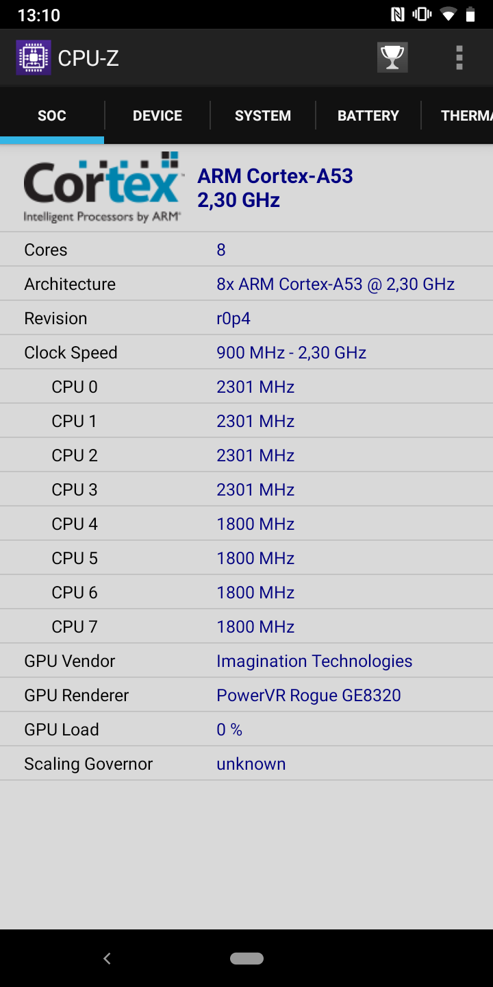 | edytor | Mediatek MT6765 helu P35 (12 nm) (4x2.3 GHz Cortex-A53 + 4x1.8 GHz A53 kora mózgowa), GPU PowerVR GE8320 |