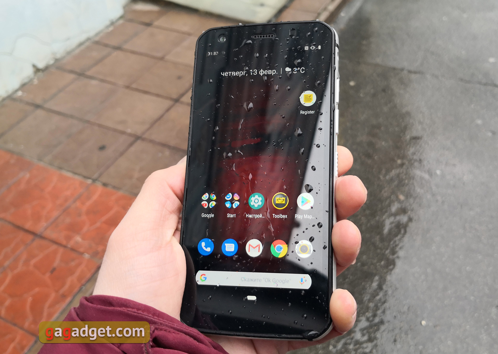 Pod względem wymiarów smartfon raczej nie jest chronionym modelem, ale zwykłym dużym smartfonem w ochronnym zderzaku. Podobnie jest odbierany. Gumowane oparcie pozytywnie wpływa na „pewność” uchwytu: smartfon nie wypada z ręki. Jest montowany z bardzo wysoką jakością.