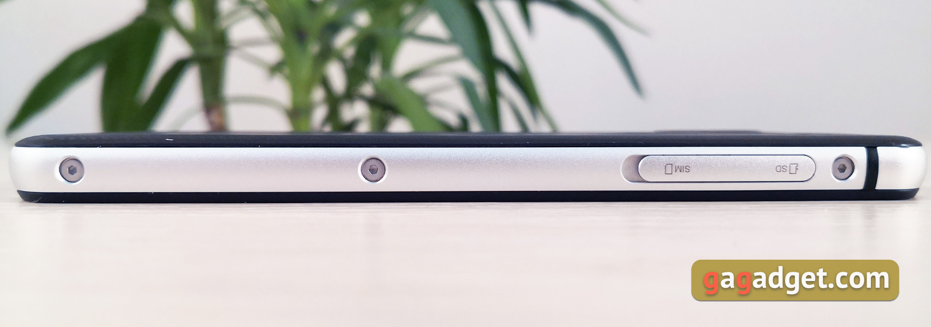 Na obwodzie smartfona znajduje się masywna metalowa rama ze śrubami Torx. Są dekoracyjne lub funkcjonalne - trudno powiedzieć, ale wygląda szczegółowo. Po lewej stronie znajduje się odcinek, pod którym znajduje się taca i mały przycisk resetowania we wnęce.