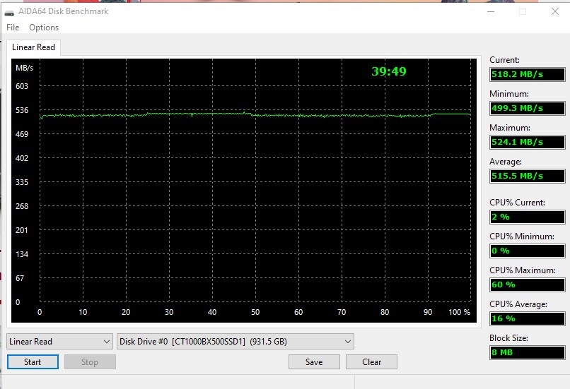 Urządzenie demonstruje deklarowane wskaźniki prędkości w testach syntetycznych. Podczas pracy nie zaobserwowano żadnych problemów technicznych. Szybkość jest typowa dla nowoczesnych dysków SSD SATAIII: