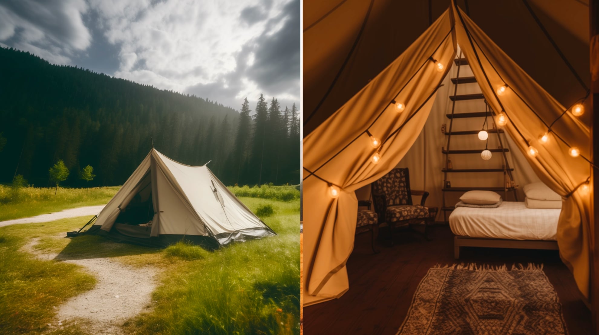 Różnica między campingiem a glampingiem (obraz wygenerowany przez Midjourney)