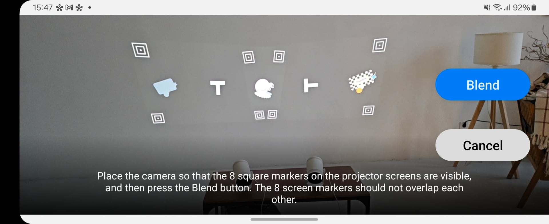 Kolejnym krokiem (i jest to bardzo wyrafinowane rozwiązanie inżynieryjne) jest skierowanie kamery smartfona na obraz na ścianie tak, aby wszystkie 8 kwadratów znalazło się w kadrze. Wyglądają one częściowo jak romby, ale właśnie tego potrzebuje inteligentny algorytm, aby obliczyć kompensację obrazów z dwóch źródeł w celu utworzenia jednego obrazu.