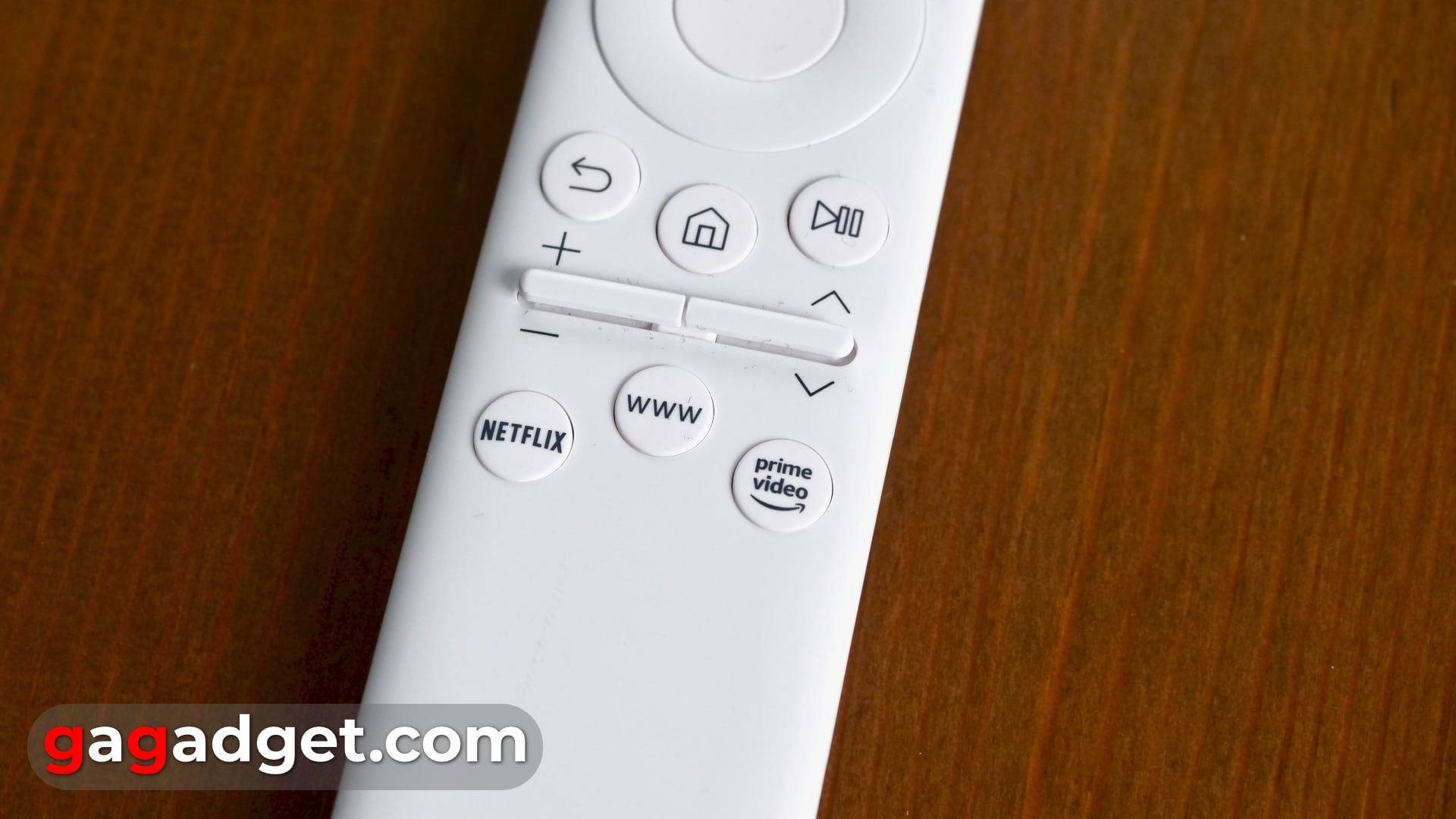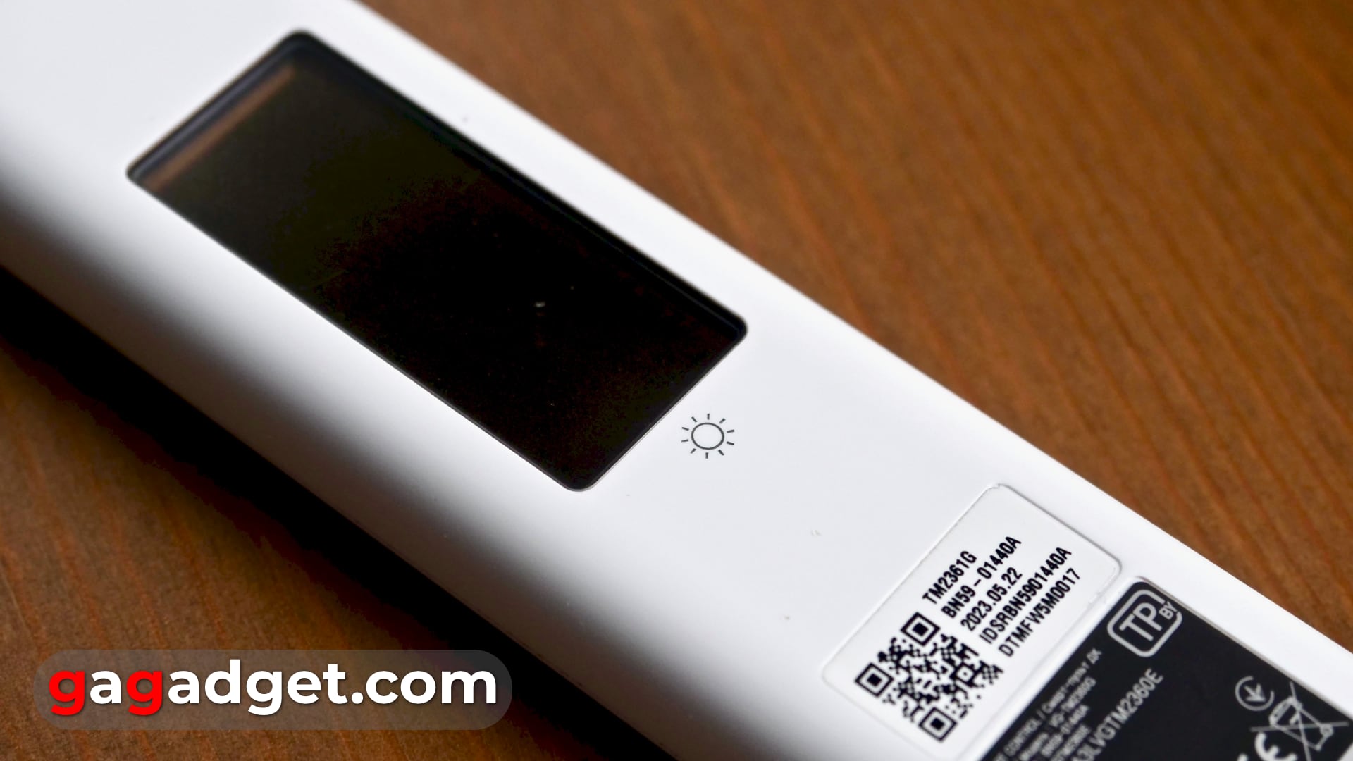 Oprócz minimalizmu i przemyślanej użyteczności pilota, który pozwala szybko nauczyć się pracować "na ślepo" (na przykład klawisze głośności wystają ponad korpus, co ułatwia znalezienie ich palcami i regulację głośności jednym ruchem bez zmiany pozycji palca), pilot ma panel słoneczny. To natychmiast wrzuca go do warunkowej "wielkiej ligi" wszystkich pilotów, ponieważ zapewnia dwie duże zalety. Po pierwsze, jeśli trzymasz pilota z panelem słonecznym skierowanym do góry, prawdopodobnie nigdy nie będziesz musiał go ładować. Po drugie, ma to wpływ na ochronę środowiska, ponieważ utylizacja zużytych baterii jest dużym problemem dla ludzkości. Jeśli zajdzie potrzeba naładowania pilota, jest on wyposażony w standardowe złącze USB-C, co pozwala na użycie tej samej ładowarki i kabla, które zostały dostarczone wraz z projektorem.