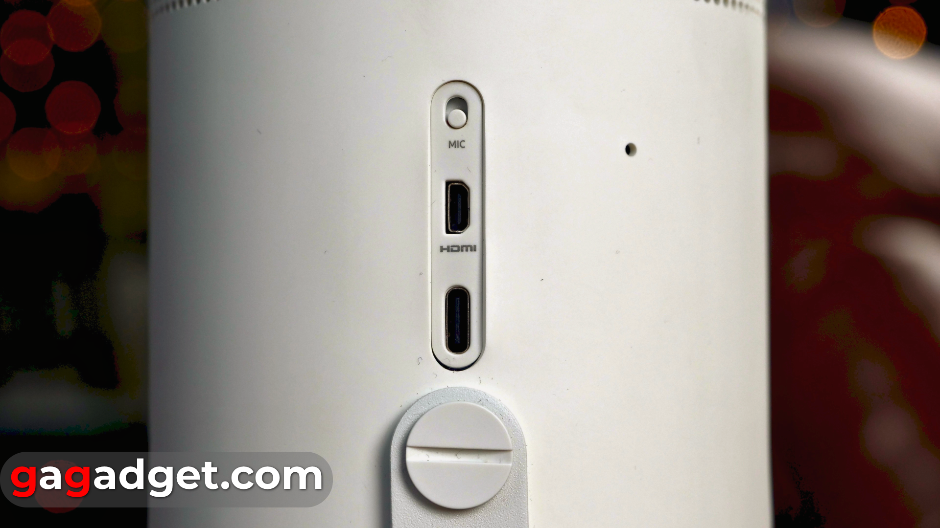 Jeśli chodzi o dźwięk, możliwości przenośnego projektora nie są zbyt duże, ale bohater recenzji pokazuje dokładnie to, czego się od niego oczekuje - wystarczająco mocny dźwięk, aby wygodnie oglądać film w pomieszczeniu i z marginesem głośności. Oczywiście w trybie głośnika audio dźwięk dookólny pozwala umieścić urządzenie na środku pokoju i słyszeć wszystko z dowolnej strony lub odległości - po prostu nie ma martwych punktów dla dźwięku. Ponadto akustyka projektora obsługuje dźwięk adaptacyjny (w tym celu na obudowie znajdują się dodatkowe mikrofony), co pozwala automatycznie zwiększyć głośność, gdy w pomieszczeniu pojawiają się głośne dźwięki. Wraz z obsługą HDR 10+ oddaje to pewien poziom technologiczny, który odpowiada pojęciu "nowoczesności" urządzenia.