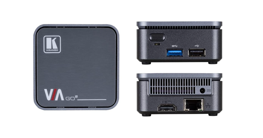 Domyślnie Kramer VIA GO2 korzysta z sieci firmowej. Prezenter musi jedynie połączyć się z biurową siecią Wi-Fi, otworzyć stronę internetową i wprowadzić kod dostępu. Urządzenie obsługuje Miracast i AirPlay, Kramer oferuje również aplikacje desktopowe i mobilne z dodatkowymi funkcjami. Urządzenie jest bardzo kompaktowe i nie wymaga zewnętrznych adapterów. Jeśli jednak pracownicy są przyzwyczajeni do przycisków sprzętowych, można zamówić opcjonalne klucze sprzętowe USB VIA Pad.