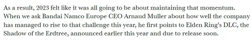 CEO Bandai Namco Europe: "Dodatek Shadow of the Erdtree dla Elden Ring zostanie wydany wkrótce"