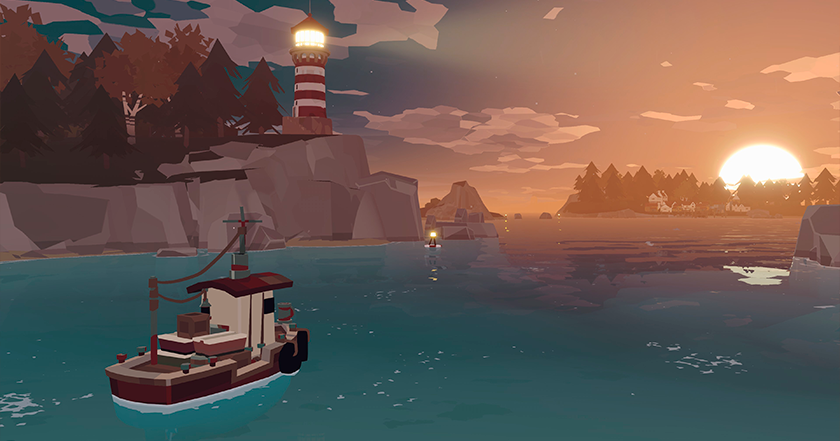 Muzyka w grze jest w większości spokojna i dramatyczna, ale poza główną melodią, pozostałych prawie nie pamiętam, bo nie mają w sobie czegoś tak wyrazistego, by na długo utkwiły mi w głowie. Zupełnie inaczej wygląda sytuacja z dźwiękami. Odgłosy fal, wiatru, mew i wszystkiego innego, co nieodłącznie wiąże się z morzem, są w grze wykonane na dobrym poziomie. Dźwięki zanurzają cię w tym świecie i przez wiele miesięcy wydawało się, że sam jesteś w grze. Szczególnie zapadły mi w pamięć momenty, gdy pływało się przy szumie spokojnych fal i oglądało wschód słońca w stylu low-poly.