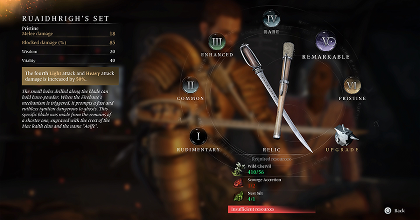 Czym jest gra fabularna bez awansowania? Banishers również to posiada. Możemy ulepszać nasze przedmioty lub umiejętności. Odbywa się to tylko przy specjalnych ogniskach, które pomogą również odpocząć i szybko przenieść się do innego ogniska, aby zaoszczędzić czas.