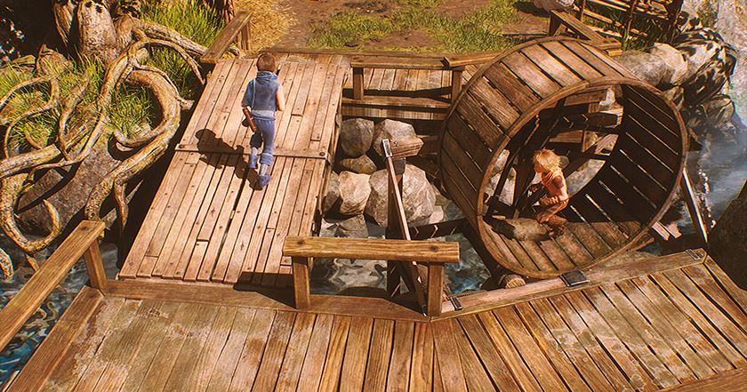 Jeśli chodzi o wady, to mogę jedynie zauważyć, że czasami trzeba zrobić coś, do czego gra nie podpowiadała. Przykładowo w jednej z lokacji trzeba przenieść część przez zniszczony most, ale żaden z braci nie wie jak skoczyć z przedmiotem w rękach. Okazuje się, że jeden z braci musi przeskoczyć przez most, a drugi rzucić w niego częścią, a wtedy ona przeleci. Inaczej nie zadziała, choć nigdy wcześniej tego nie pokazano. Zagadką jest też, dlaczego nie mogę rzucić częścią bez drugiego brata po drugiej stronie mostu. Na szczęście takie momenty można policzyć na palcach jednej ręki, ale trzeba było o tym wspomnieć.