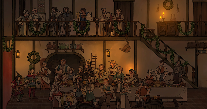 To tak, jakbyś został przeniesiony do książki z tamtych czasów, gdzie wszystko ożyło, a ty chodzisz między ilustracjami i patrzysz na nie. I choć nie przepadamy za tym określeniem, tym razem dobrze pasuje - styl wizualny Pentiment jest wyjątkowy. Po prostu nie znajdziesz gry o podobnym stylu. To jedyna taka gra i to właśnie czyni ją tak atrakcyjną. Nawet gdy rozmawiałem o Pentiment z moimi przyjaciółmi, powiedzieli: "Nic o tym nie wiemy, ale styl wizualny tak bardzo zapada w pamięć ze zwiastunów".