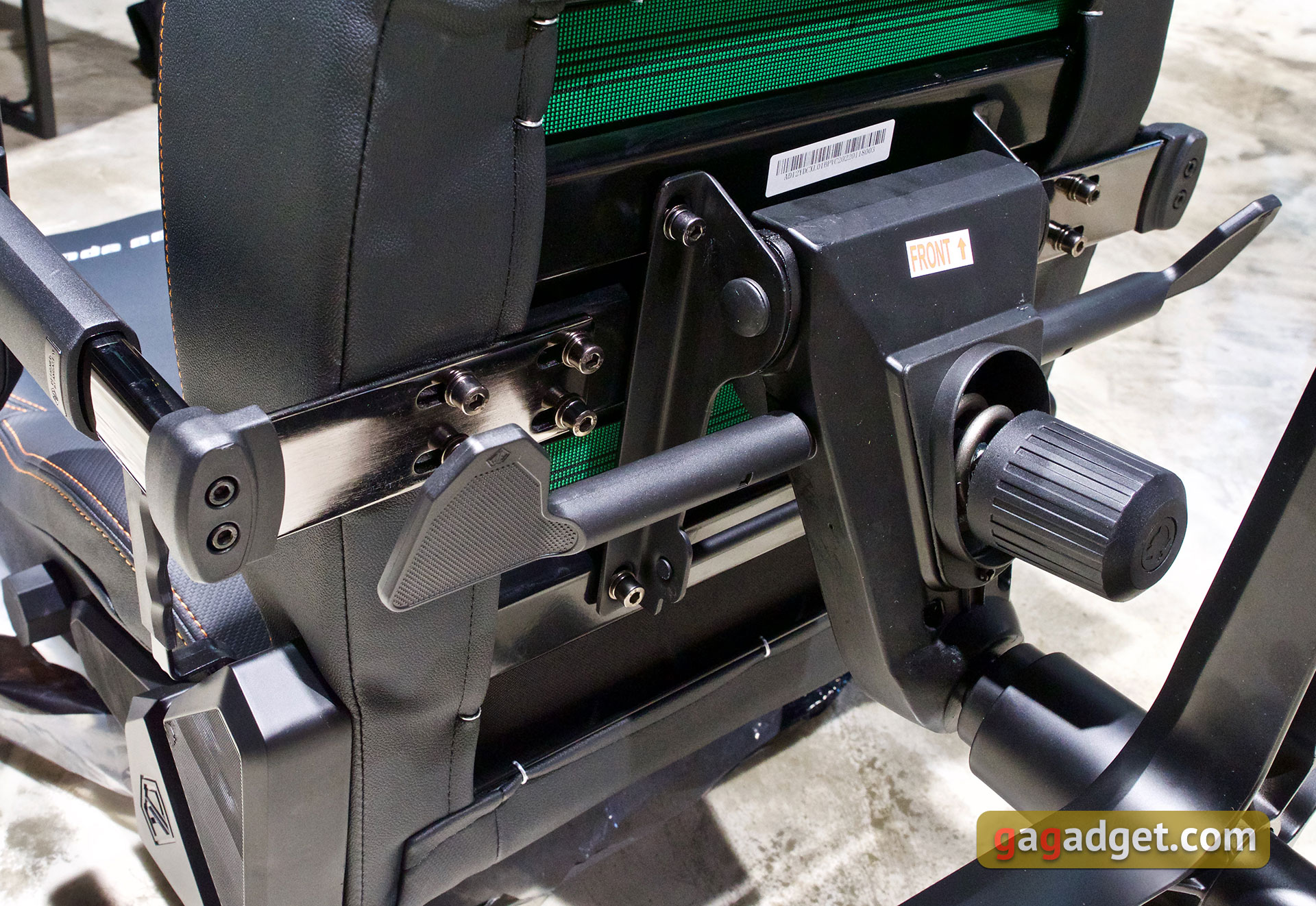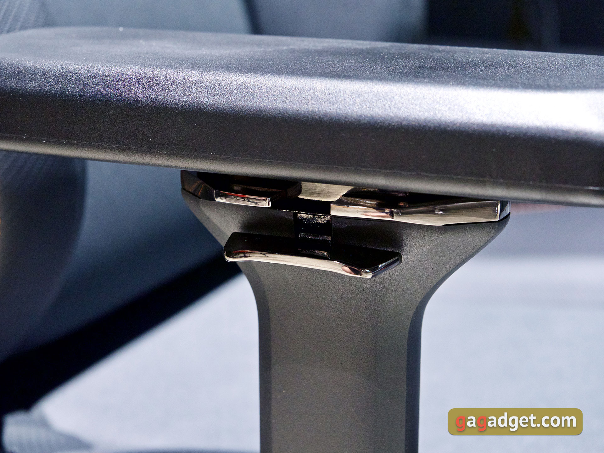 Konstrukcja podłokietników jest również całkowicie metalowa, w tym przyciski do ich regulacji.