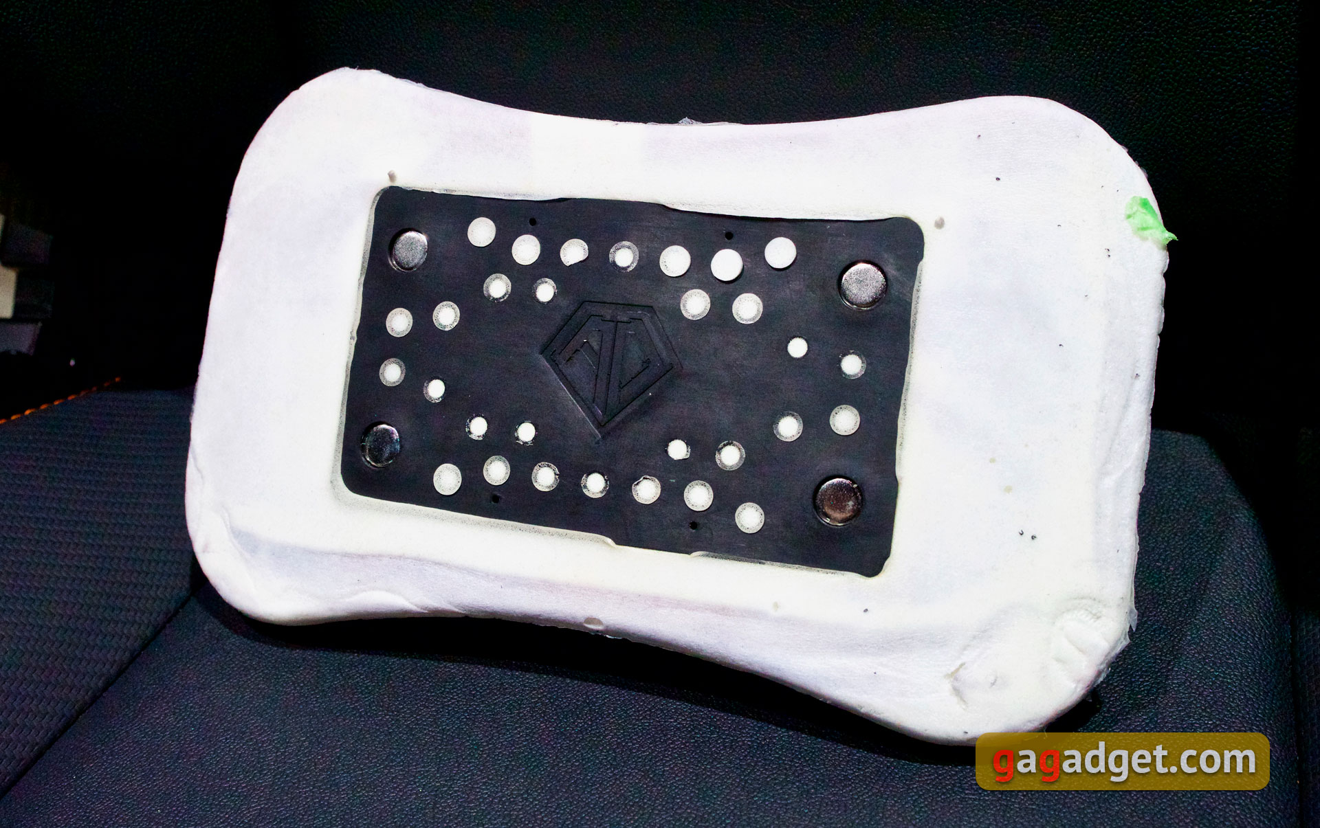 Poduszkę pod kark można umieścić od góry krzesła do bocznych otworów. Zapięcia magnetyczne trzymają się całkiem dobrze, choć oczywiście nie są tak niezawodne jak tradycyjna wersja.