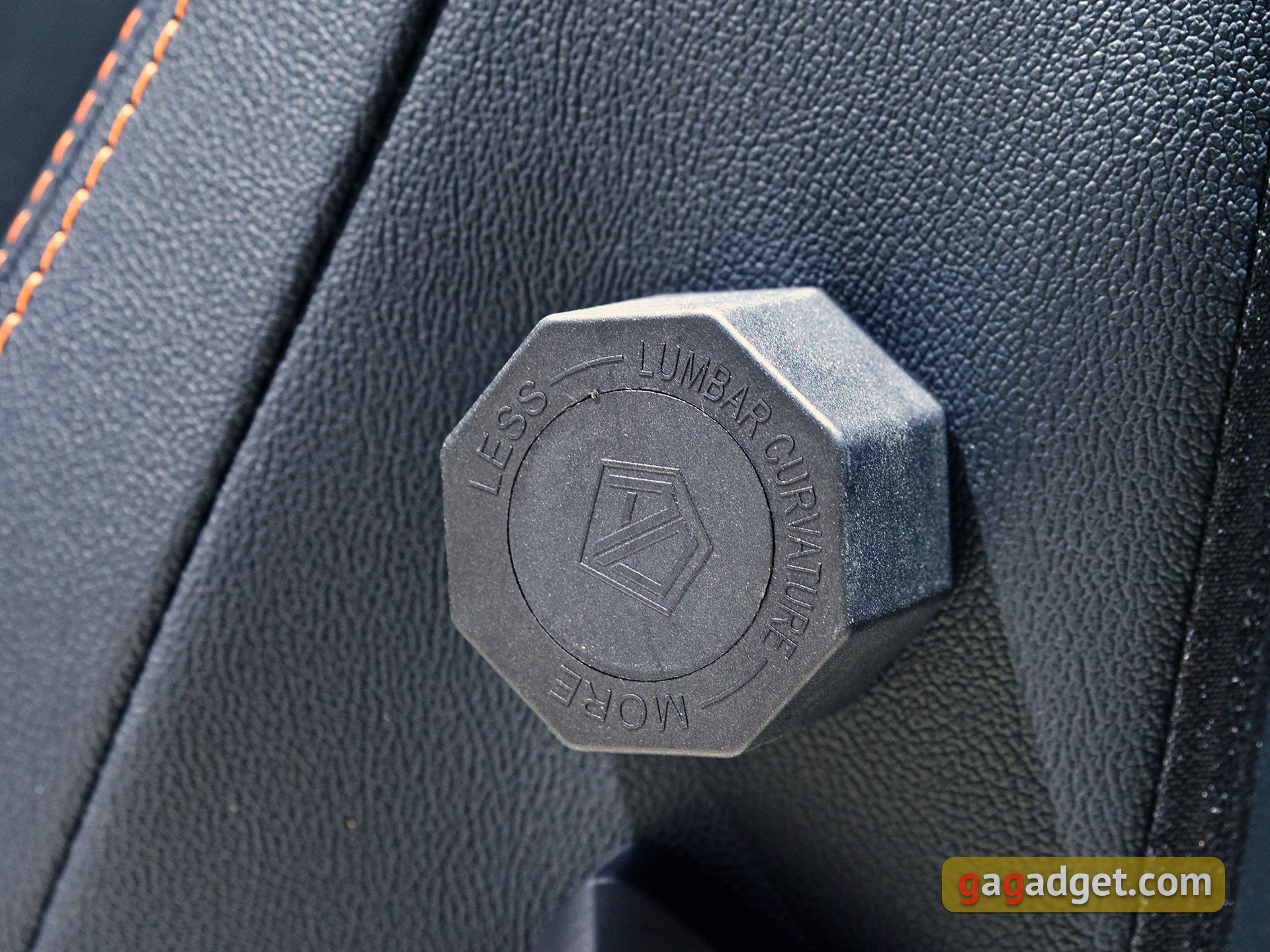 W przeciwieństwie do większości krzeseł ze zdejmowaną poduszką, Anda Seat Kaiser 3 XL ma podparcie lędźwiowe wewnątrz oparcia. Po obu stronach znajdują się pokrętła.