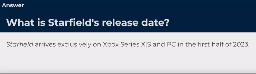 To samo w sobie nic nam nie mówi, ponieważ gra nie została jeszcze wydana, ale strona wskazuje na okno wydania Starfield: pierwsza połowa 2023 roku.