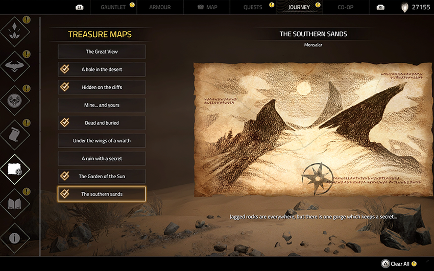 - Mapy skarbów - musisz znaleźć trzy części mapy skarbów, aby zobaczyć lokalizację, w której ukryta jest specjalna skrzynia, która zapewni różne bonusy