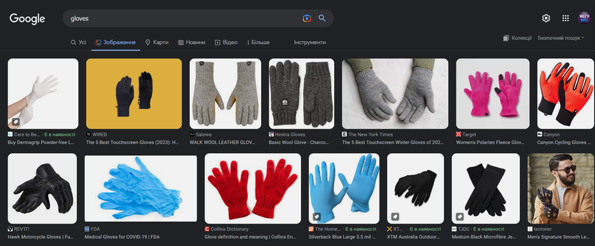Dzieje się tak dlatego, że jeśli po prostu wyszukamy "rękawiczki" w obrazach Google, to zobaczymy, że na większości zdjęć rękawiczki leżą prosto i wyraźnie widać 5 palców. A AI opiera się na bazie zdjęć dostępnych w sieci.