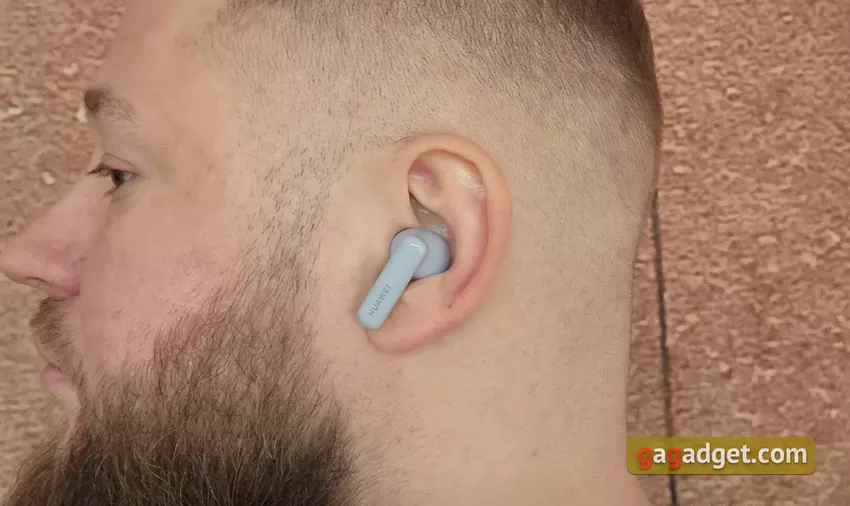 Huawei FreeBuds 5i mają bardzo wygodny i przemyślany kształt. W połączeniu z minimalną wagą pozwala to na korzystanie z nich przez wiele godzin bez żadnego dyskomfortu. Po pewnym czasie zapomina się o obecności słuchawek w uszach. Przy dobrym doborze końcówek uzyskuje się całkiem dobrą pasywną izolację akustyczną. Trzeba jednak wiedzieć, że Huawei FreeBuds 5i mają bardzo płytkie dopasowanie. I przez pewien czas próbowałem wcisnąć je głębiej do ucha. Mogą więc być nieco nietypowe dla osób, które lubią głębokie dopasowanie.