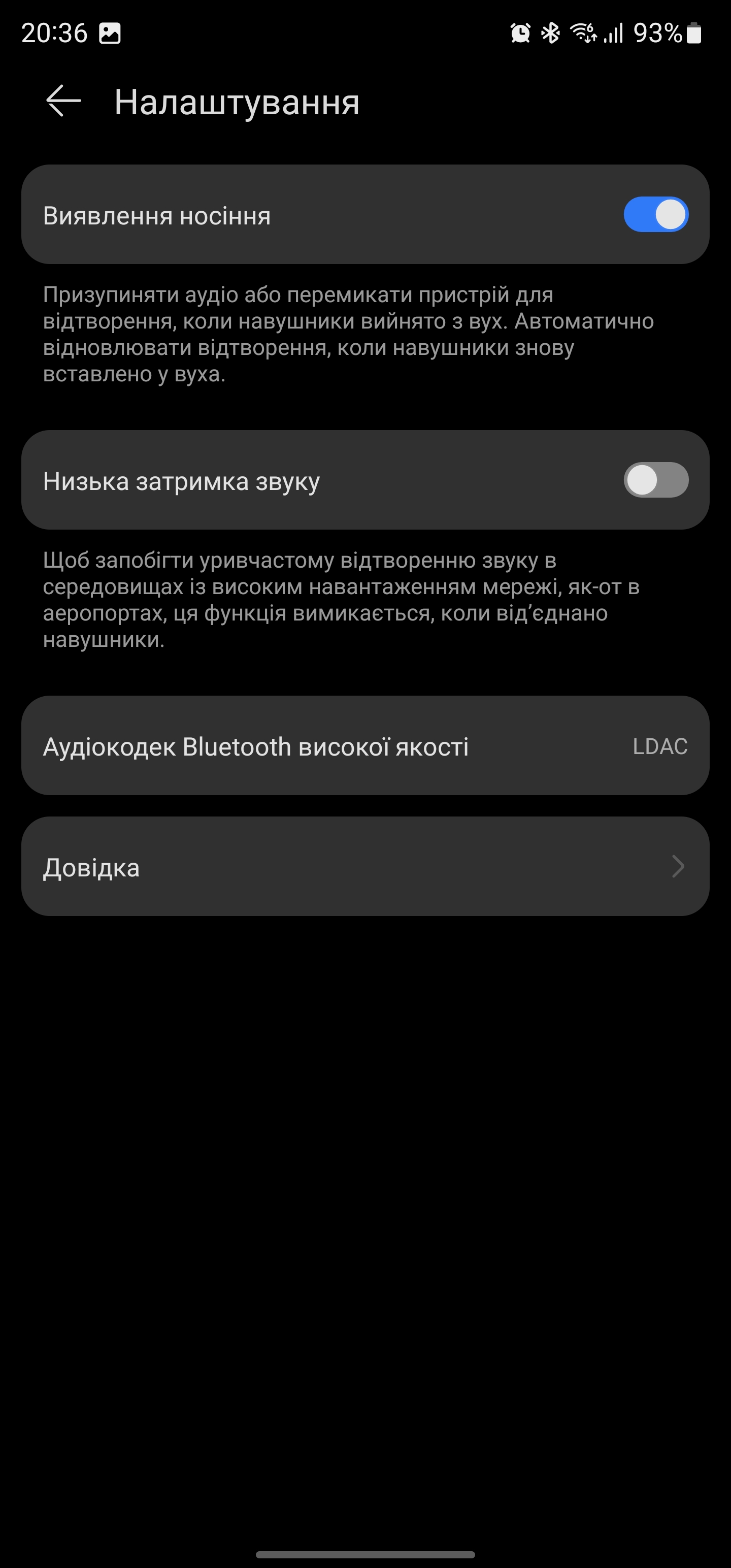 Do wszystkich ustawień jest autorska aplikacja Huawei AI Life. Niestety, nie jest ona dostępna w Google Play, więc trzeba pobrać plik APK z oficjalnej strony, skanując kod QR w instrukcji. Nie jest to zbyt wygodne rozwiązanie. Aplikacja posiada przełącznik trybów redukcji hałasu: redukcja hałasu, wyłączenie oraz tryb czujności (tryb przezroczystości). Sama redukcja szumów ma trzy tryby: maksymalny, zrównoważony i komfortowy. Są też ustawienia dotyczące gestów dotykowych i aktualizacji oprogramowania. Centrum połączeń jest odpowiedzialne za ustawienie urządzenia priorytetowego i przełączanie, gdy dwa urządzenia są podłączone jednocześnie. W pozycji "Jakość dźwięku" można wybrać priorytet jakości dźwięku lub połączenia. Poniżej znajduje się korektor dźwięku. Chociaż jest to bardzo prymitywne: w rzeczywistości istnieje tylko możliwość wzmocnienia niskich lub wysokich częstotliwości. "Wyszukiwanie słuchawek" pozwala odtwarzać dźwięk na każdym z nich. Jest to naprawdę przydatne, jeśli słuchawka zostanie utracona gdzieś w pokoju. Test dopasowania słuchawek pomoże Ci wybrać najlepszą parę wkładek dousznych. W pozycji "Ustawienia" możesz aktywować funkcję "Wearable Detection": odtwarzanie zostanie automatycznie wstrzymane, jeśli wyjmiesz słuchawkę z ucha. Poniżej możesz aktywować niskie opóźnienie dźwięku i zobaczyć, który kodek jest używany do transmisji.