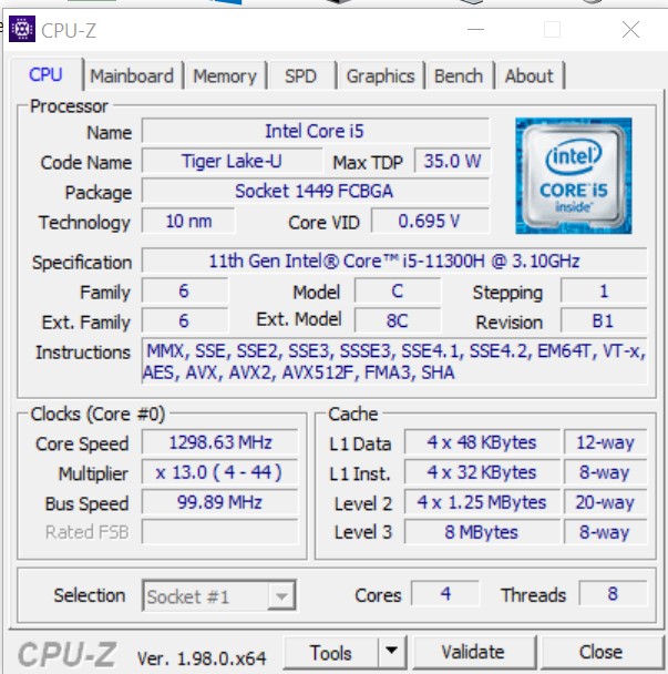 | Procesor | Intel Core i5-11300H (Tiger Lake-H35, 10nm SuperFin), 4 rdzenie / 8 wątków, 3,1-4,4 GHz |