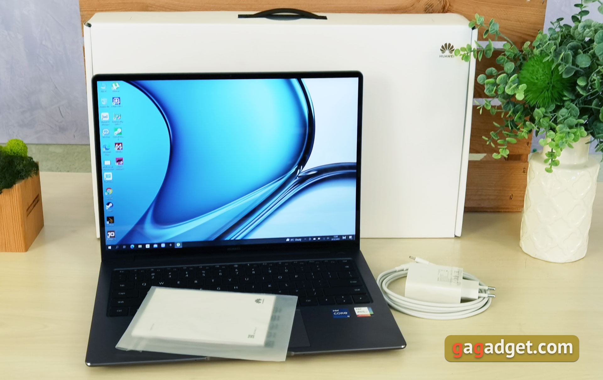 Huawei MateBook 14s jest dostarczany w pudełku o standardowych rozmiarach dla laptopów. Jest biały, z minimalną ilością napisów. Mamy do czynienia ze zwykłym zestawem: sam laptop, zasilacz 90 W, kabel ze złączami Type-C po obu stronach oraz dokumentacja.