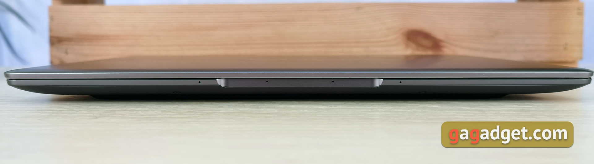 Z przodu, oprócz zwykłego wycięcia do otwierania laptopa, znajduje się blok czterech mikrofonów: