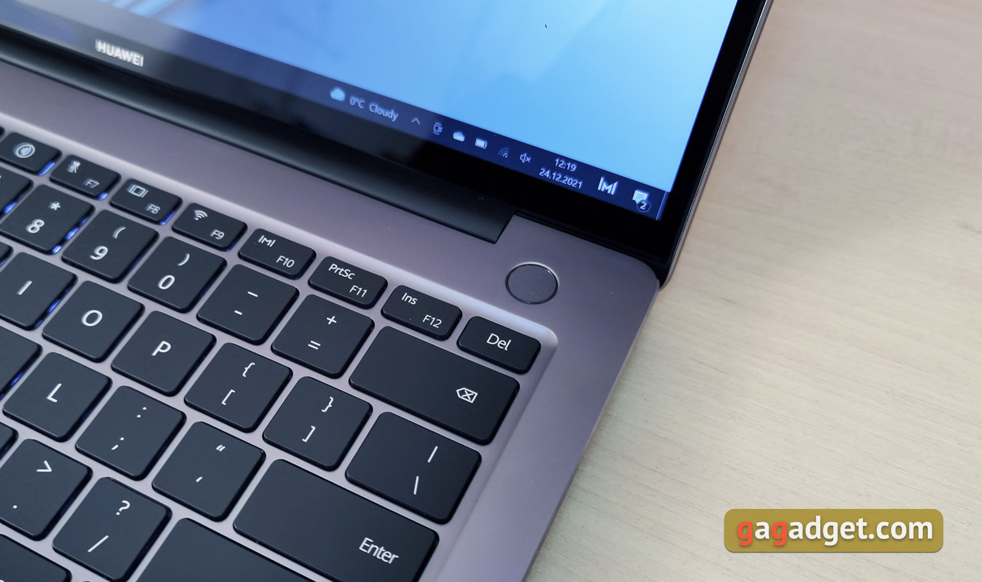 W prawym górnym rogu powierzchni roboczej znajduje się okrągły przycisk zasilania. Posiada wbudowany skaner linii papilarnych: