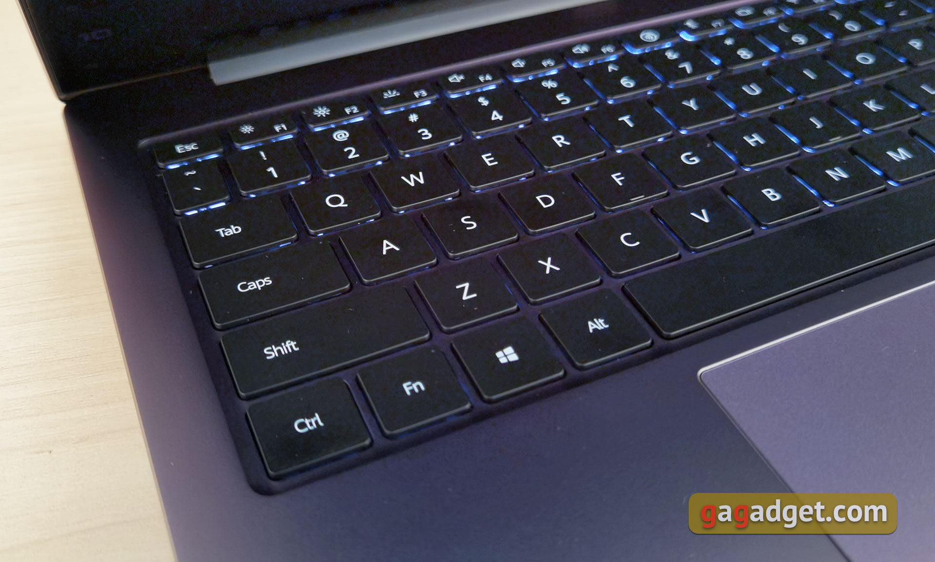 Przyciski wykonane są z matowego czarnego plastiku. Pomimo kompaktowych rozmiarów i niewielkiej grubości laptopa, skok przycisków wynosi 1,5 mm. Jest umiarkowanie miękki, ale informacyjny. Jest białe podświetlenie z dwoma poziomami jasności. Nie jest zbyt jasno i w rzeczywistości doświetla większą przestrzeń między przyciskami, więc w ciemności nie będzie z tego większego sensu i wygody przy pracy.