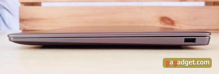 Ramka na obwodzie ekranu jest cienka. Mimo to kamera internetowa, a także czujniki podczerwieni do rozpoznawania twarzy właściciela i czujnik światła znajdują się na swoim zwykłym miejscu, nad wyświetlaczem. I nie w przycisku, jak to było w Huawei MateBook X Pro. Dotykowy ekran pokryty jest szkłem ochronnym, które w tym przypadku jest niezbędne, ale trochę dziwnie błyszczy.