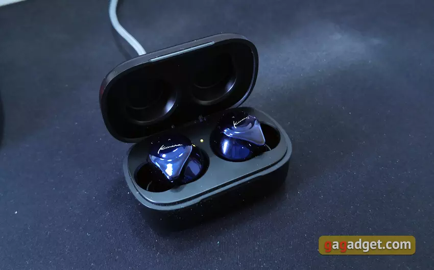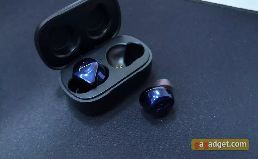 W pracy Kinera YH623 proste i jasne. Słuchawki automatycznie włączają się po wyjęciu z futerału. Nawiasem mówiąc, właśnie ta procedura może początkowo wydawać się nie zbyt prostą: nie od razu udało mi wydostać słuchawki z futerału. Ale to poprostu potrzebuje przyzwyczajenia: najwygodniej było mi podważyć słuchawki przy dolnej półce. Po rozpakowaniu słuchawki są ze sobą połączone i albo podłączone do znanego źródła, albo przechodzą w tryb parowania. Jak już wspomniano powyżej, można ich używać w trybie słuchawek mono. W tym celu wystarczy usunąć tylko jedną słuchawkę. Może być wygodny do użycia w samochodzie.