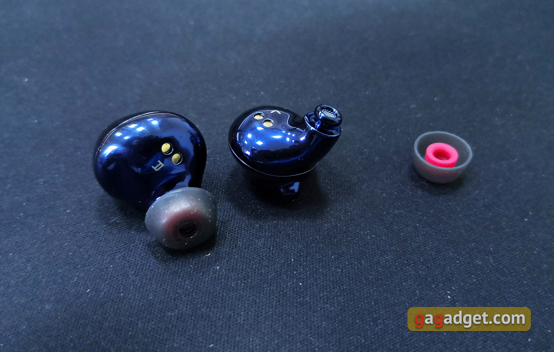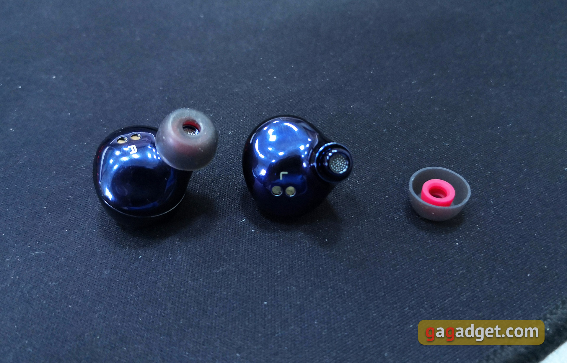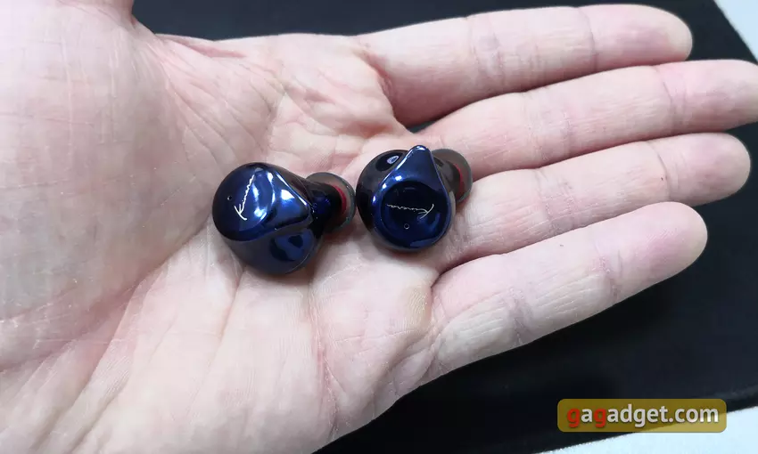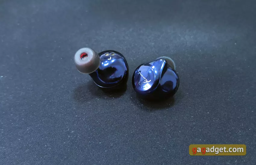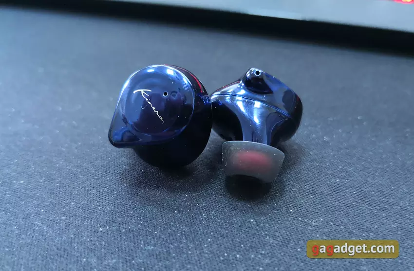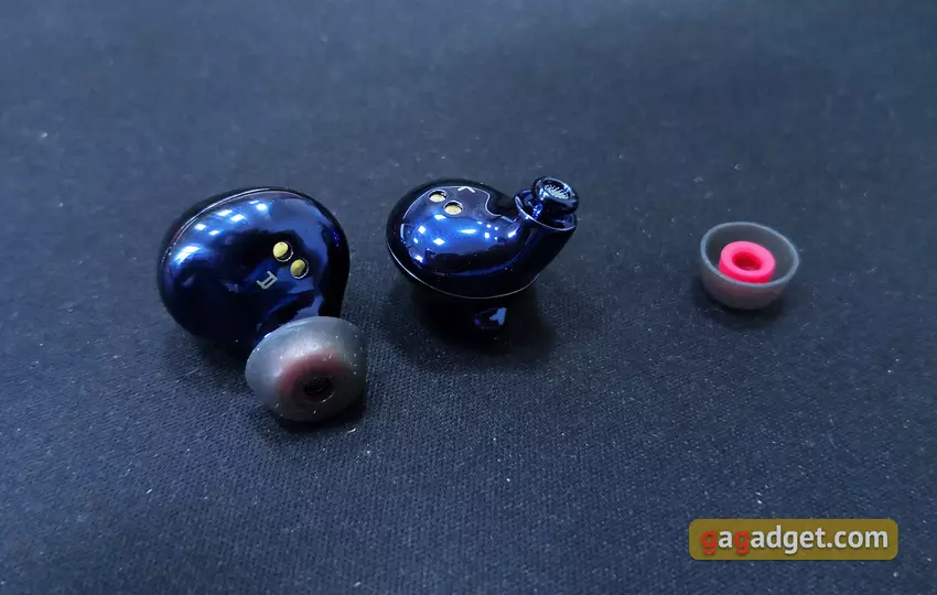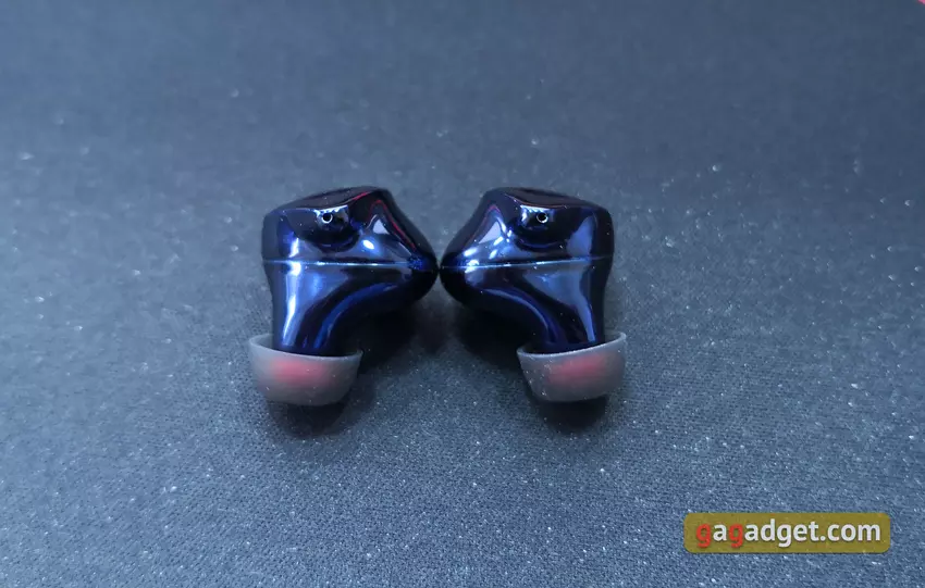 Wewnętrzne połówki samych słuchawek płynnie przechodzą w dość długie przewodniki dźwiękowe. Otwory są chronione przez siatki, a na końcu znajduje się występ zapewniający bardziej niezawodne mocowanie dysz: