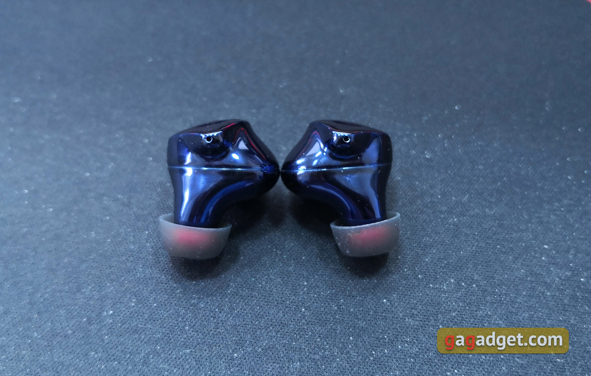 Nie ma żadnych zastrzeżonych aplikacji, wszystkie sterowania odbywają się za pomocą tabliczki dotykowej na słuchawkach. Jedno dotknięcie - odtwarzanie / pauza, podwójne dotknięcie prawej słuchawki - przejście do następnego utworu (a także odbieranie / resetowanie połączenia), na lewej słuchawce - powrót do utworu. Głośność jest regulowana długim naciśnięciem prawej i lewej słuchawki, aby odpowiednio zwiększyć lub zmniejszyć głośność. Potrójne dotknięcie służy do wywoływania asystenta głosowego. Działają z Asystentem Google, ale nie było możliwości sprawdzenia za pomocą Siri. Na pierwszy rzut oka może się wydawać, że programiści zrobili sterowanie zbyt skomplikowanym. Ale tak naprawdę na przyzwyczajenie pujdzie ci nie więcej niż 1-2 dni.