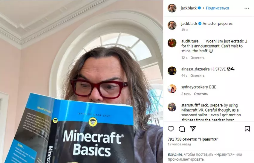 Black opublikował post na Instagramie, w którym udostępnił zdjęcie siebie czytającego książkę "Minecraft Basics" z podpisem "Aktor przygotowuje się".