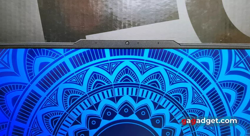 Ramki na górze i po bokach wyświetlacza są cienkie. Kamera internetowa ze wskaźnikiem i dwoma mikrofonami znajduje się w swoim zwykłym miejscu na małej półce, co jest wygodne przy otwieraniu laptopa.